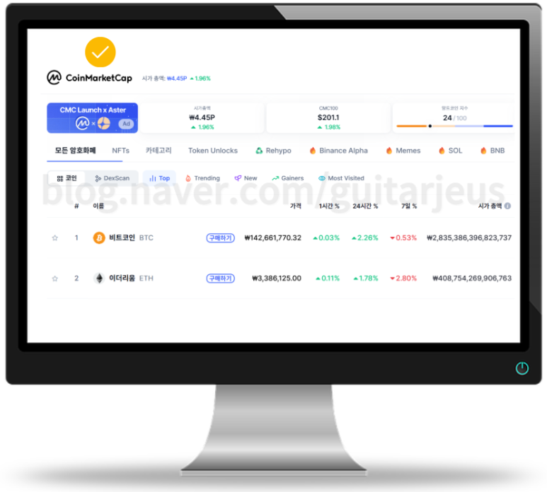 암호화페 거래소 순위는 대표적으로 코인마켓캡이라는 사이트를 통해서 실시간 확인이 가능해요.