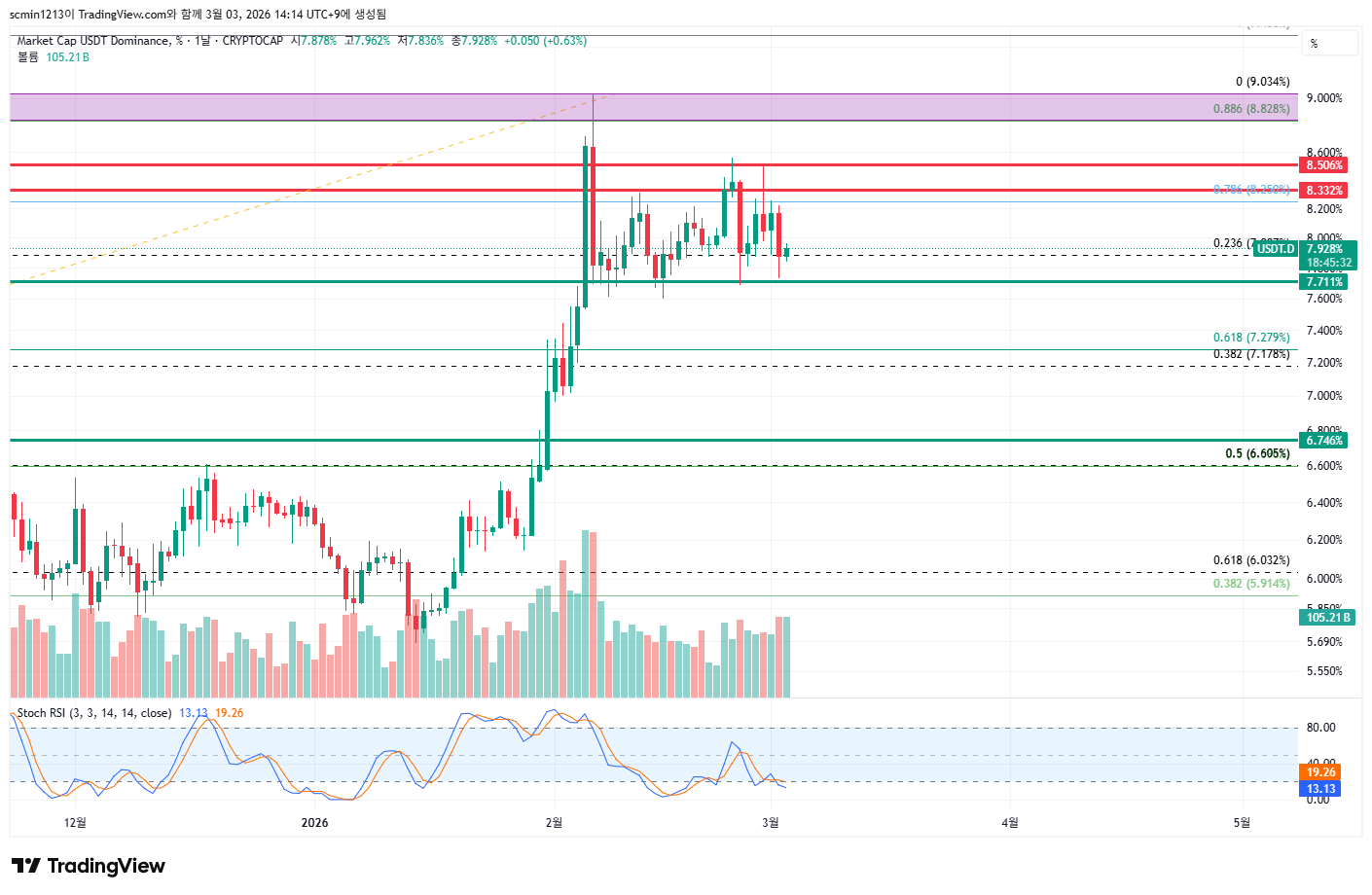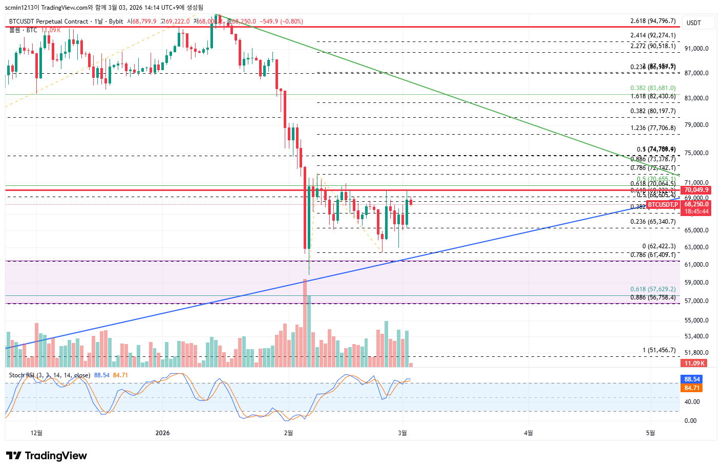 비트 일봉 로그차트 참고