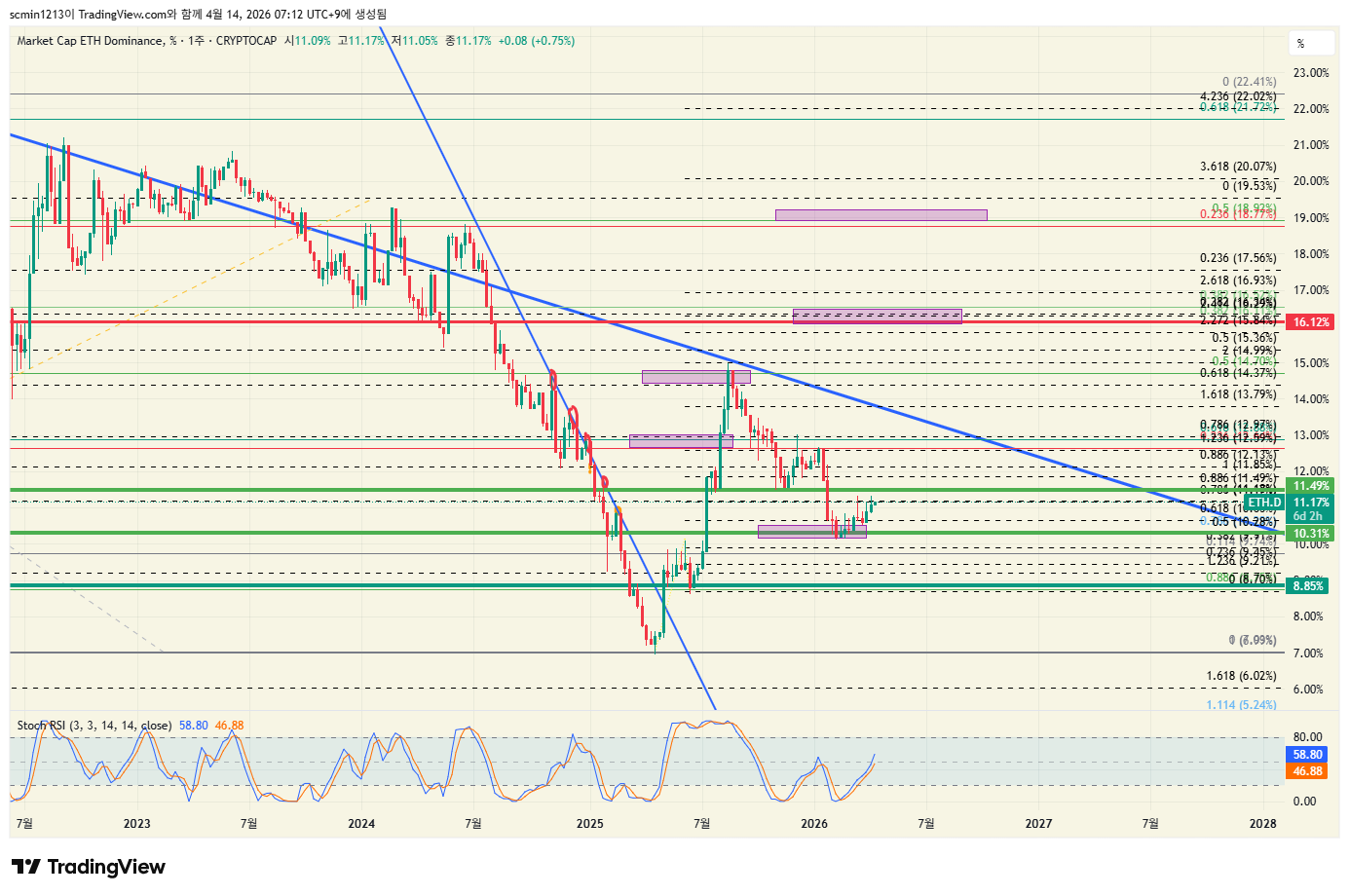 이더가 풀발해서 도미가 막 상승할수도 있지만 알트가 하도 많아져서 굵은 파란선에 또 막힐지도. 도미는 뭐 참고만