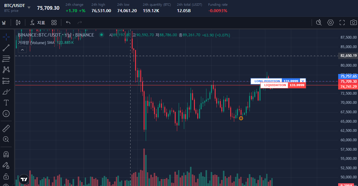 이전에 롱잡고 어제 협상에서 81K까지 롱을 가지고 가려고 했는데,
