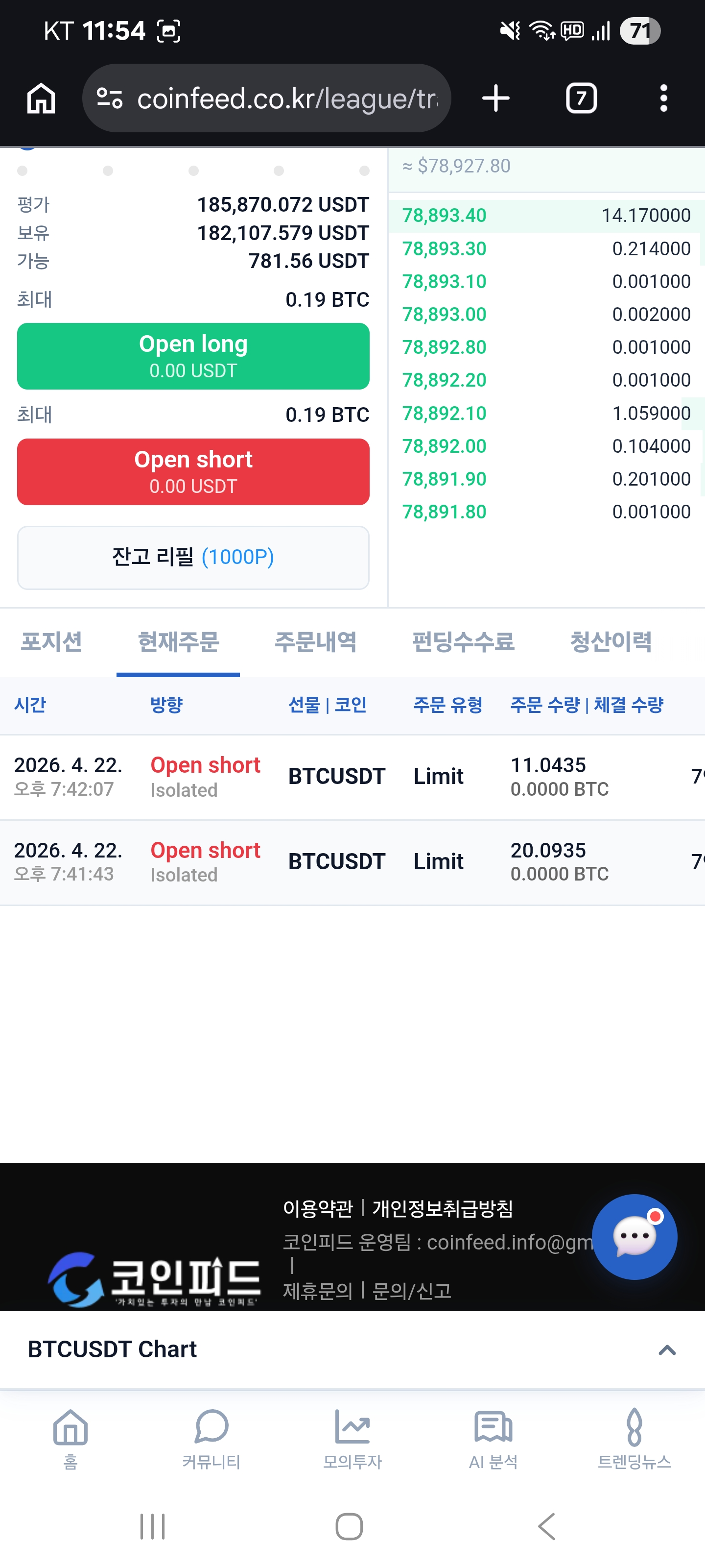숏 근거는 미리 잡아둔 저항선. 2주 전부터 비트