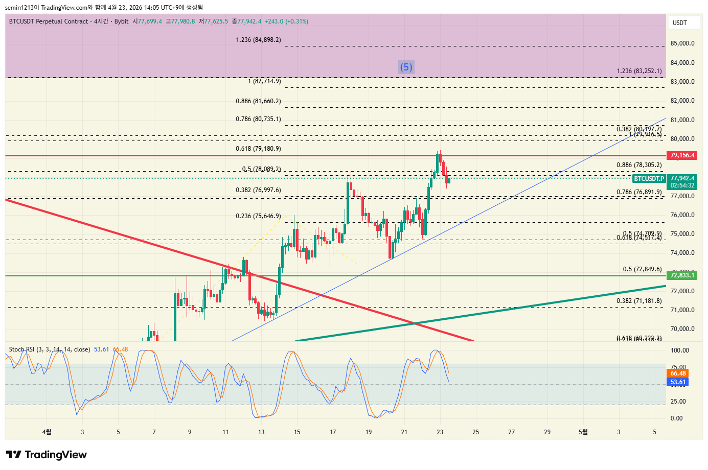 비율대로 올리면 83.5-84.4 정도 짧으면 79.1 << 짧게라도 저항이 나올 자리란거지