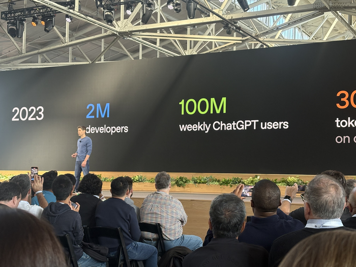 6일(현지시간) 오픈AI의 연례 개발자 대회인 ‘데브데이’가 열린 미국 샌프란시스코 포트메이슨 컨벤션홀.
