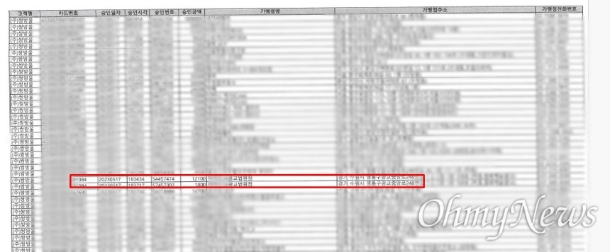 <오마이뉴스>가 입수한 쌍방울 법인카드(끝자리 1084) 결제내역에는 이같은 주장을 뒷받침하는 정황이 발견됐다.