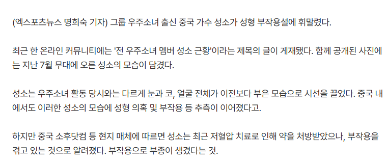 약 부작용인데 성형 소리 듣는 건 너무하네ㅠ 연예인도 사람이다…”