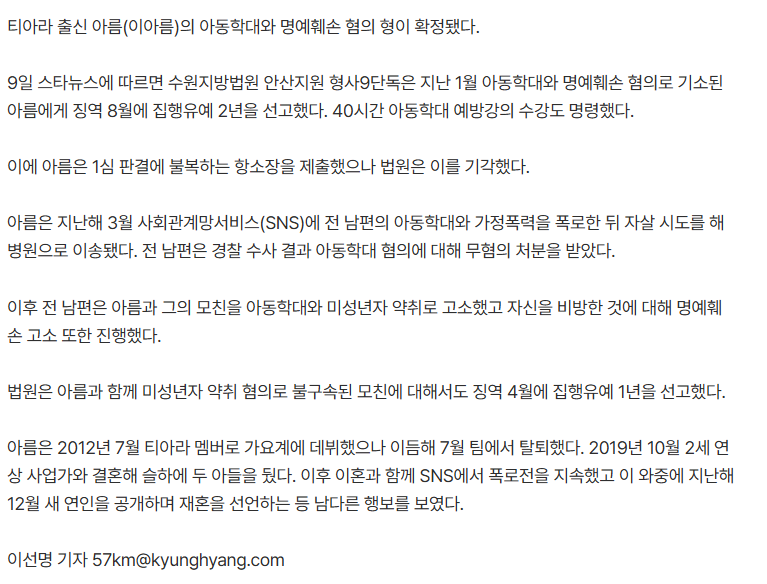“전 남편 폭로에서 시작된 SNS 논란이 결국 법정까지 이어졌습니다. 아동학대·명예훼손 혐의로 징역 8개월에 집행유예 2년 확정. SNS 폭로로 시작된 일들이 이렇게 끝나는 걸 보면, 인터넷의 ‘공개전쟁’은 항상 후폭풍이 크네요.”