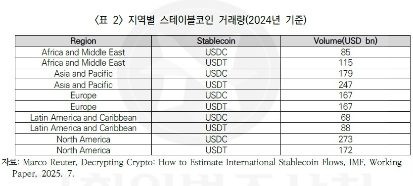 학계에서는 국제 스테이블코인의 지역별 스테이블코인 거래량을 추정하려는 시도가 이어지고 있다.