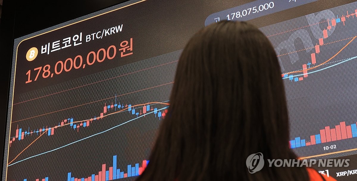 10일 서울 강남구 빗썸 라운지에서 관계자가 비트코인 시세를 확인하고 있다. 국내시장에서 연휴 기간 최고가를 두 번 경신한 비트코인은 10일 오전 1억 7700만원 후반대를 유지하고 있다. 2025.10.10