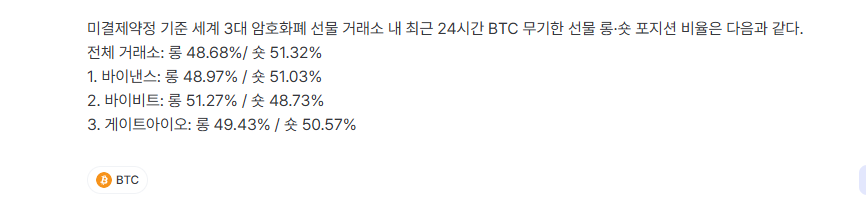 3대 선물 거래소 BTC 무기한 선물 롱숏 비...