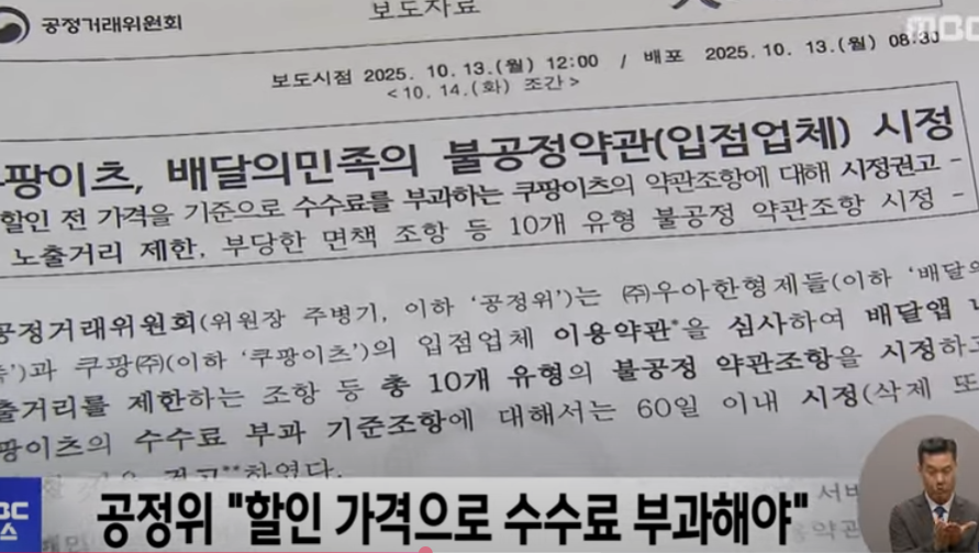 특히 쿠팡이츠는 할인 쿠폰을 제공하는 입점업체에게 할인 전 금액을 기준으로 수수료를 부과해 비용 부담을 키운 것으로 드러났습니다.