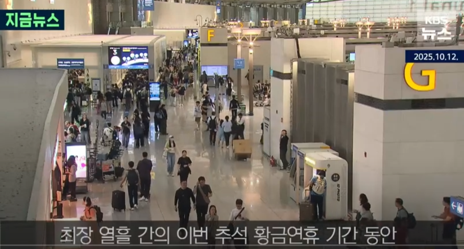 최장 열흘간의 이번 '추석 황금연휴' 동안 인천국제공항의 하루 평균 이용객이 21만명을 넘으며 역대 추석 연휴 중 가장 많은 인파가 몰렸습니다.