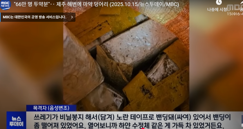 제주 바닷가에서 66만 명이 투약할 수 있는 분량의 마약이 발견헐.................