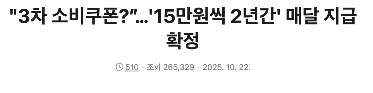 "3차 소비쿠폰?”…'15만원씩 2년간' 매달 지급 확정