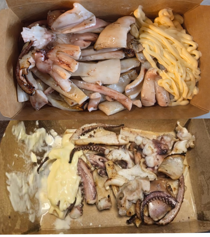 이번 논란은 최근 온라인 커뮤니티에 올라온 게시글에서 비롯됐다. 작성자는 "1만5000원짜리 철판 오징어 중자를 주문했는데 숙소에 와보니 반만 준 것 같다"고 주장하며 사진을 공개했다. 사진에는 오징어 다리 몇 개와 부스러기 수준의 몸통 조각만 남아 있었다. 해당 글은 20일 오전 게재된 후 당일 저녁쯤 삭제됐다.