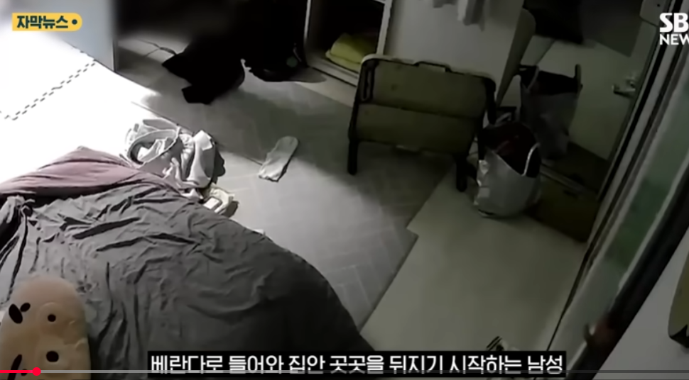 베란다로 들어와 집안 곳곳을 뒤지기 시작하는 남성.