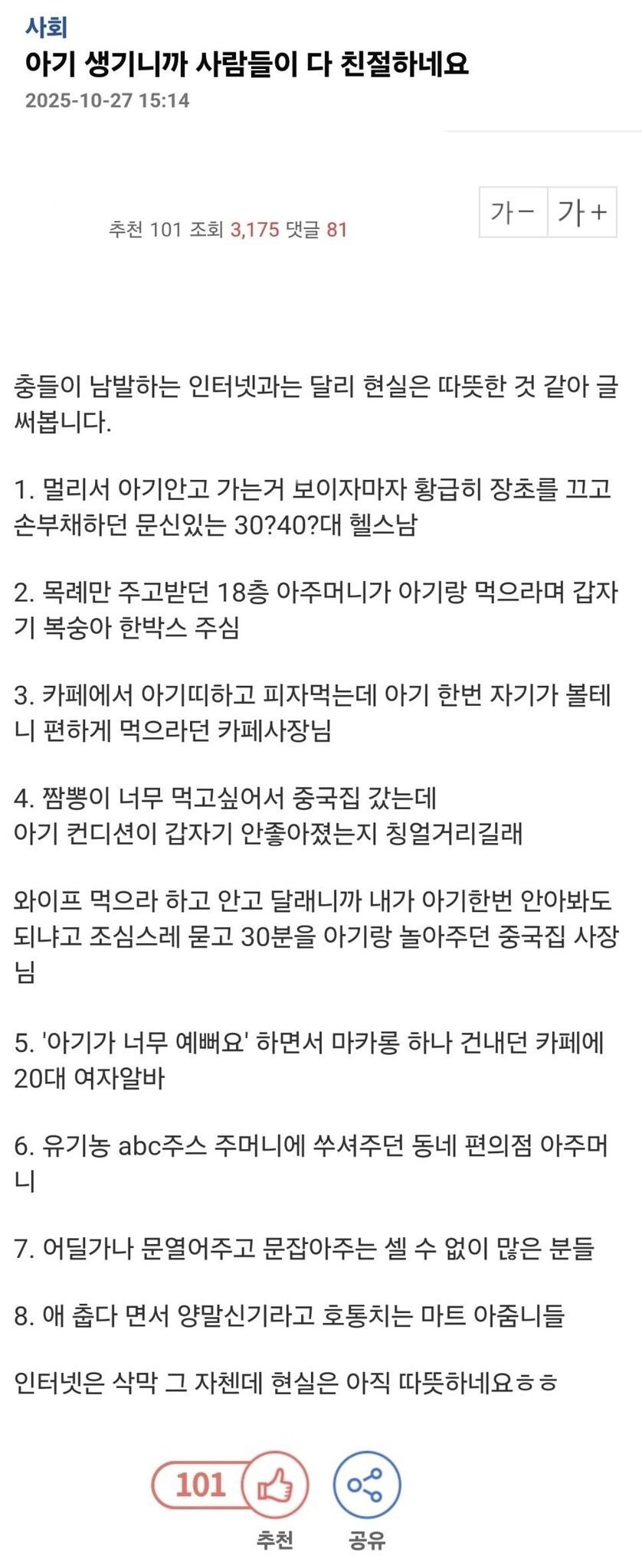 애낳기전엔 겪어보지도못한 따뜻한친절 많이받음