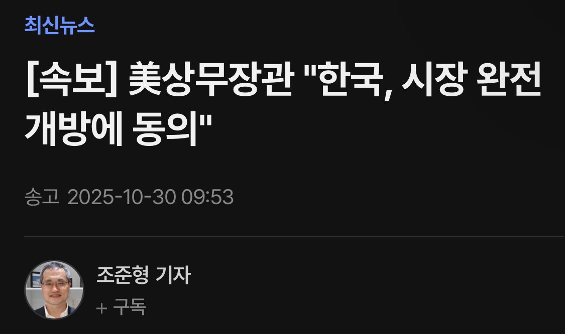 [속보] 美상무장관 "한국, 시장 완전 개방에 동의"