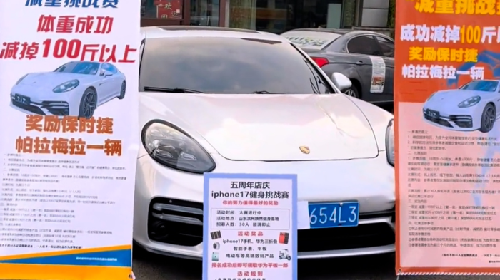 중국 산둥성 빈저우의 한 헬스장이 3개월 안에 50kg을 감량하면 2억 2,000만원 상당의 '포르쉐 파나메라'를 증정하겠다는 파격적인 다이어트 이벤트를 내걸어 논란이 되고 있습니다.