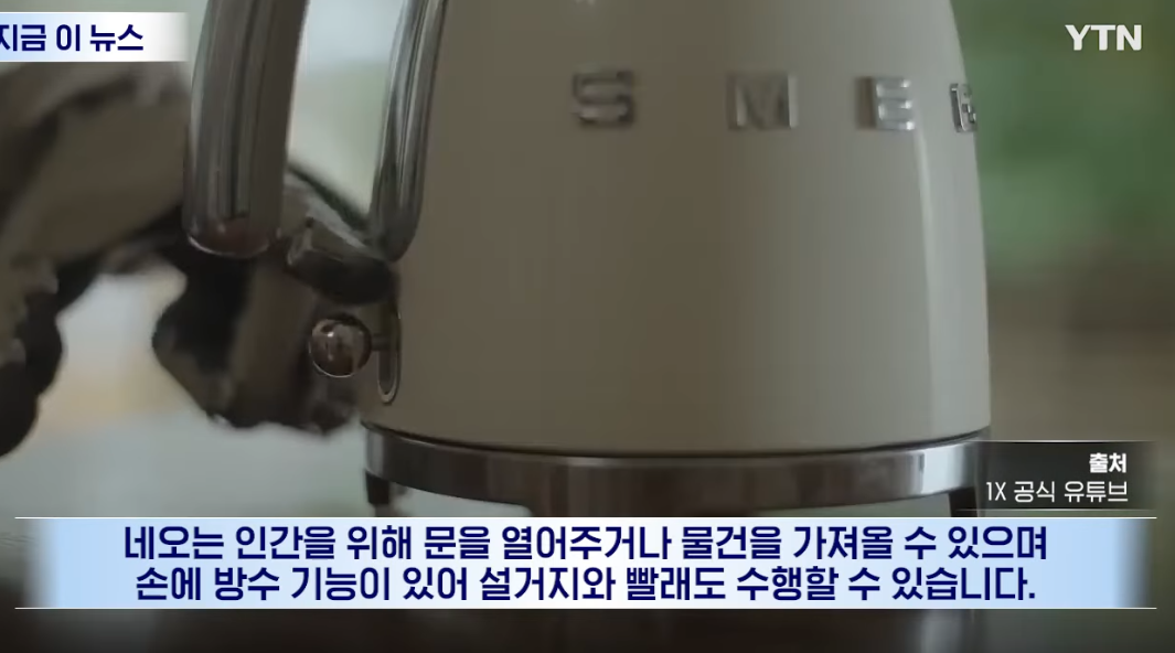 네오는 키 168cm, 무게 약 30kg의 인간형 로봇으로 내장 카메라와 센서를 통해 다양한 가사를 수행할 수 있고 사람들과 대화도 가능합니다.