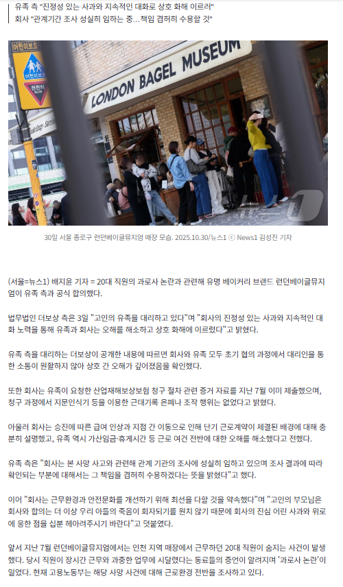 20대 과로사 직원 유족, 런베뮤와 합의…"아들 죽음 회자 원치 않아"