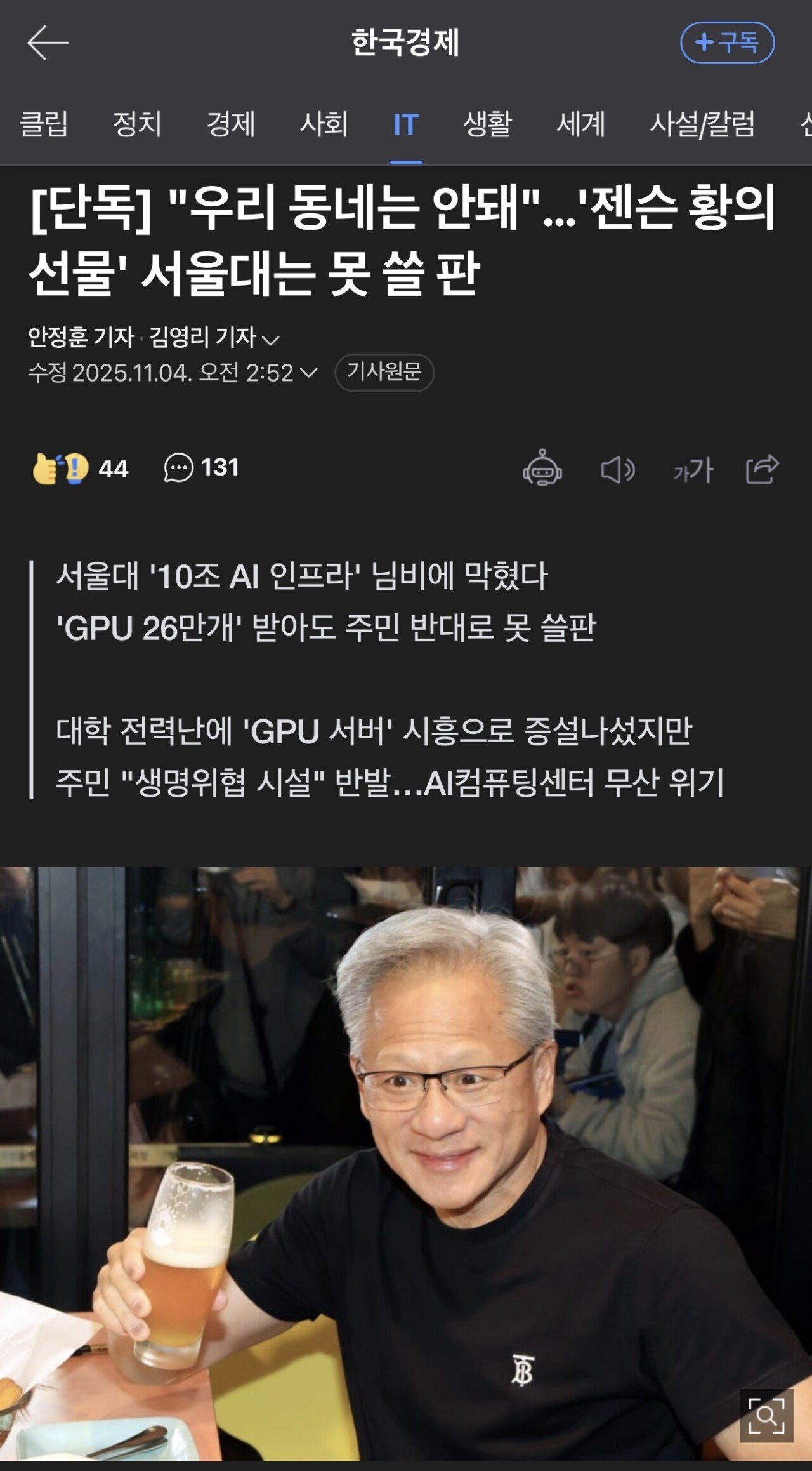 [단독] "우리 동네는 안돼"…'젠슨 황의 선물'