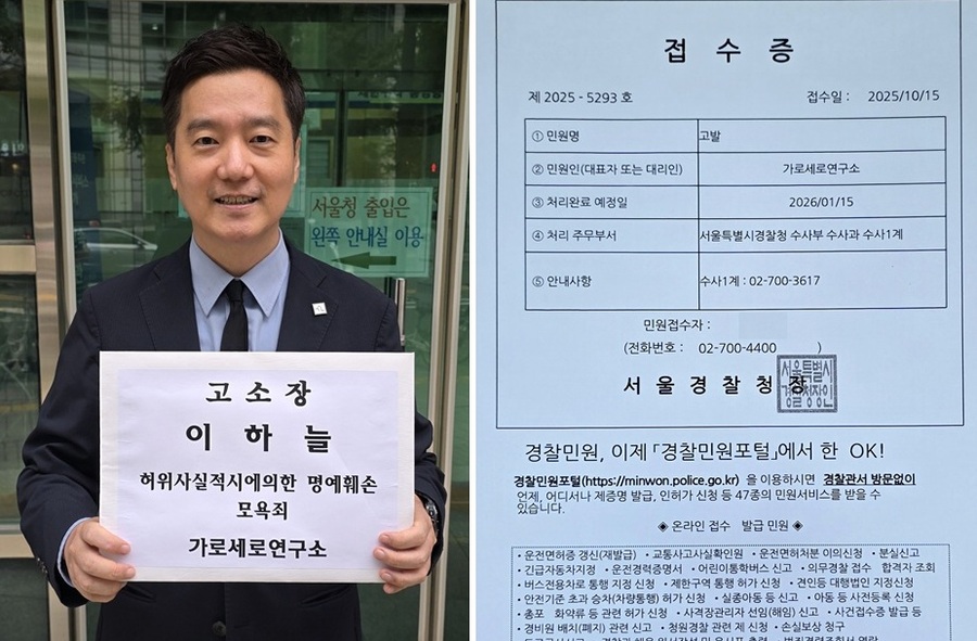 김세의 가세연 대표는 "요즘 가로세로연구소가 여당과 '민중기 특검' 등에 대한 고발을 이어가자 좌파 대표 유튜브 채널인 '매불쇼'를 비롯해 좌파 진영 사방에서 공격이 들어오고 있다"며 "여기에 가수 이하늘까지 숟가락 얹어보려고 가세연을 조롱하기 위해 허위의 사실을 유포했기 때문에 반드시 강력한 처벌을 받게 할 것"이라고 밝혔다.