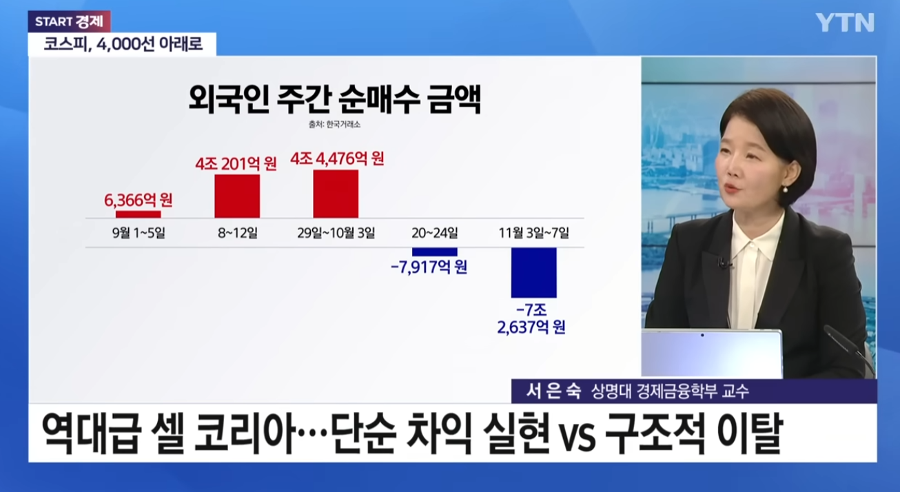 외국인, 주간 코스피 7.2조 원 순매도...원화 가치 1주일 새 2% 급락