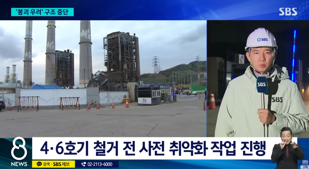 철골과 유리섬유가 뒤엉킨 보일러 타워 잔해 속.