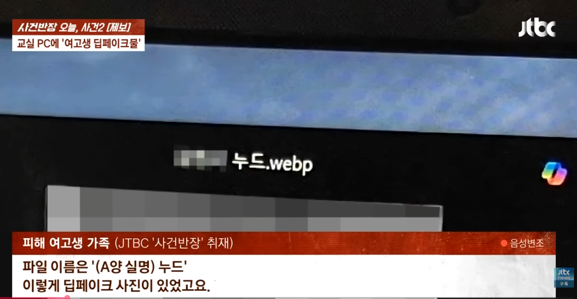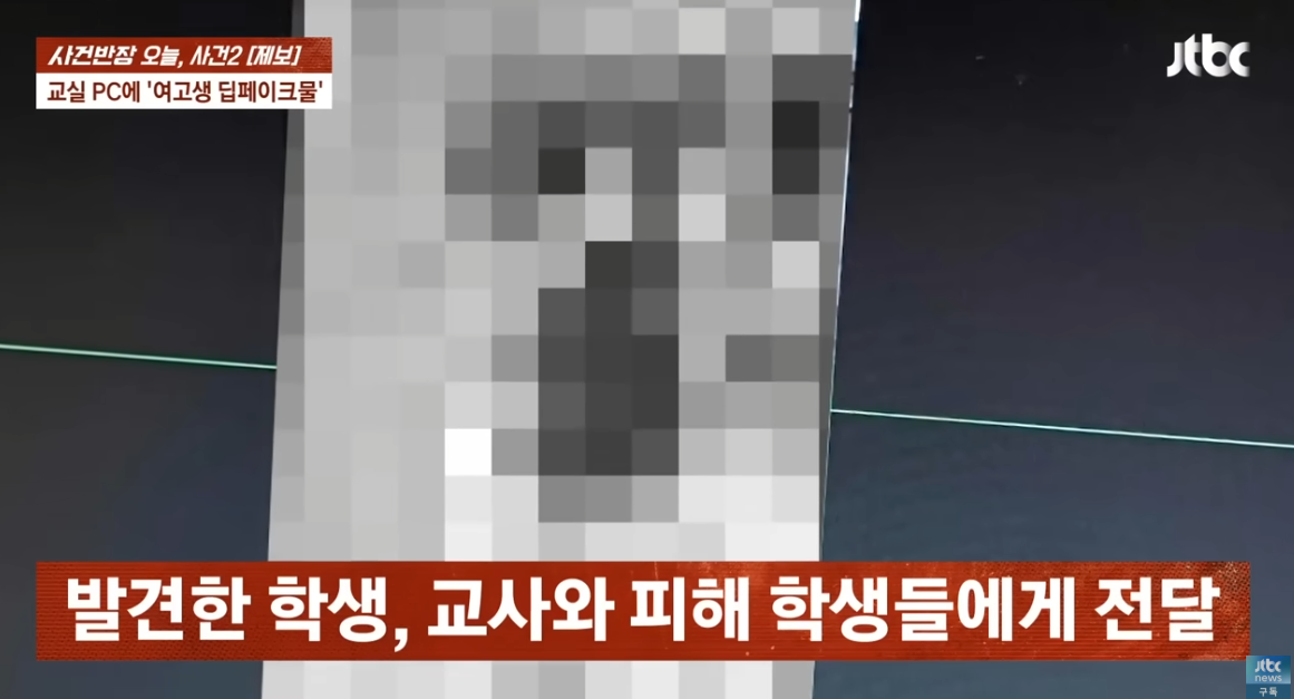 서울의 한 고등학교 교실의 공용 PC에서 여학생의 사진을 조작한 딥페이크 이미지와 성적 표현이 담긴 글이 발견됐다는 '제보'