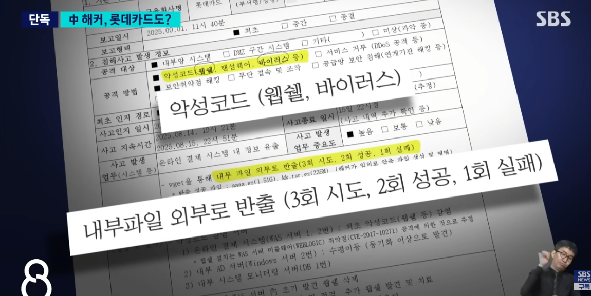 지난달 1일 해킹 사고를 인지한 직후 롯데카드가 금융감독원에 제출한 전자금융사고 보고서입니다.