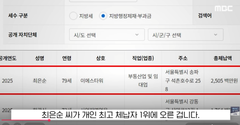 체납자 1,468명 중 '개인 1위'..79세 최모씨