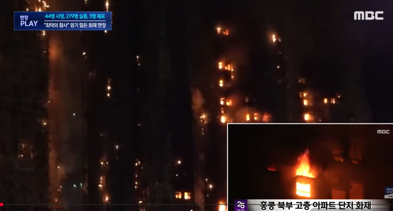 홍콩 현장 상황..55명 사망, 실종자 2백여명 상당수 아파트 안에 갇혀