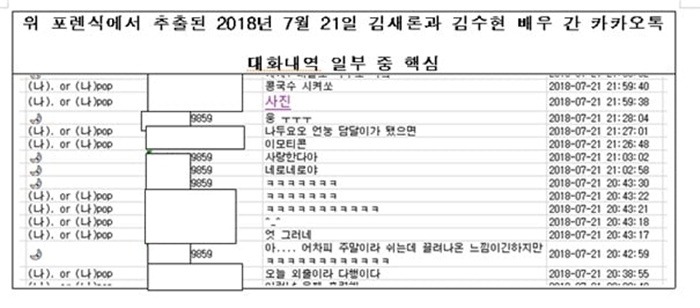 김새론 유족 측 법률대리인 법무법인 부유 부지석 변호사는 4일 “김수현 배우의 법률대리인 고상록 변호사가 지속해서 사회관계망서비스(SNS)와 유튜브 채널에 사건 관련 글을 올리고, 전날엔 인터뷰까지 진행해 가며 또다시 조작 프레임을 씌우고 있다”며 “더 이상 논란의 여지가 없도록 수사기관에 제출한 김새론과 김수현 배우 간 카카오톡 대화 내역 포렌식 자료를 공개한다”라고 밝혔다.