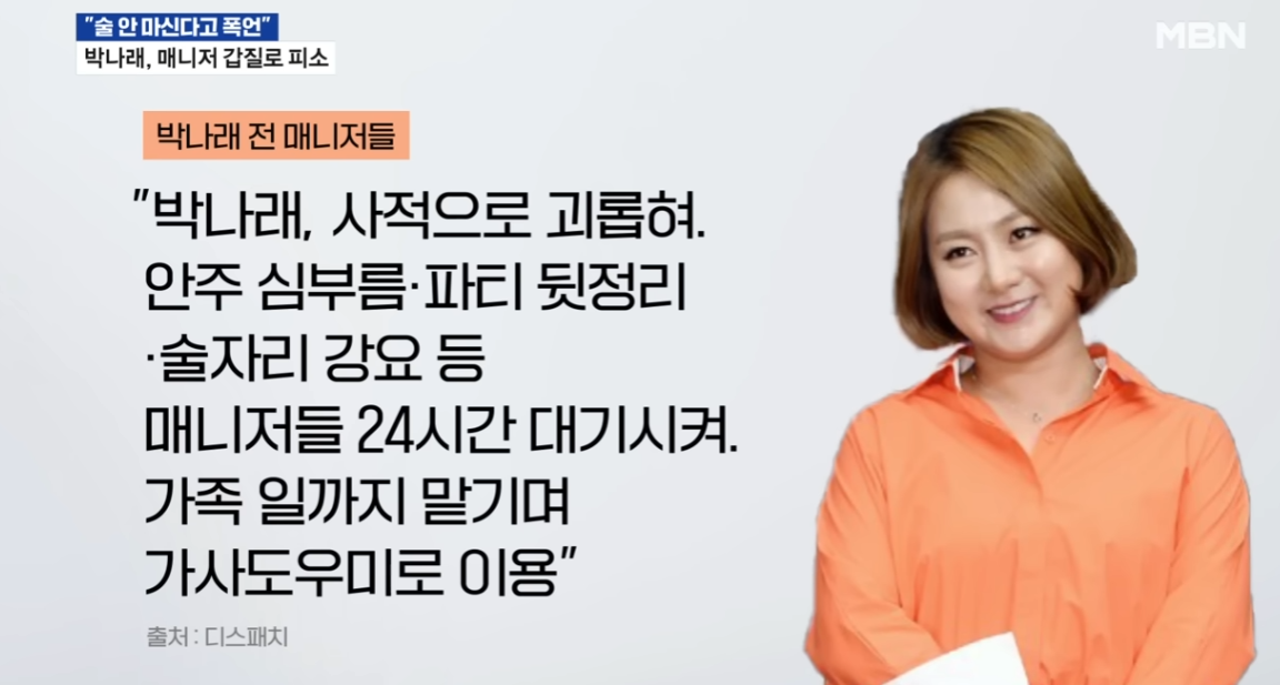 "술 안 마신다고 폭언" 박나래, 매니저 갑질로 피소