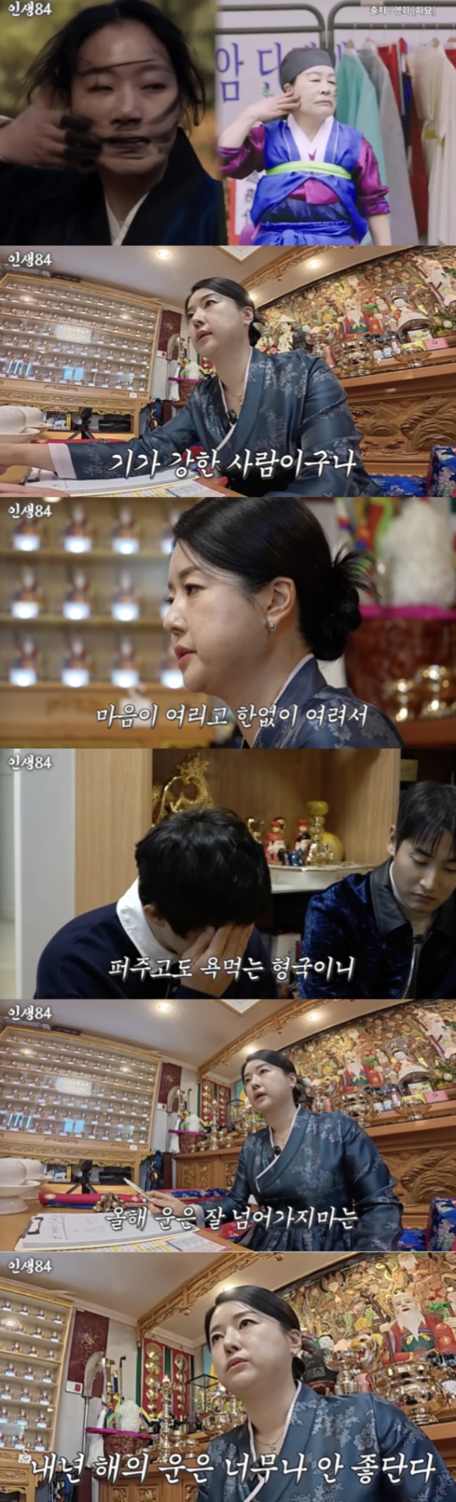 방송인 기안84가 무속인으로부터 내년 운세와 관련해 다소 험난한 기운이 찾아올 수 있다는 조언을 들었다.8일 유튜브 채널 '인생84'에는 "전역한 박재정과 함께"라는 제목의 영상이 공개됐다.이날 기안84는 "굉장히 어렵게 섭외했다"며 영화 '파묘' 속 김고은의 실제 모델로 알려진 고춘자 무속인과 그의 며느리이자 신딸인 이다영 무속인을 찾아가 사주를 보게 됐다고 설명했다.