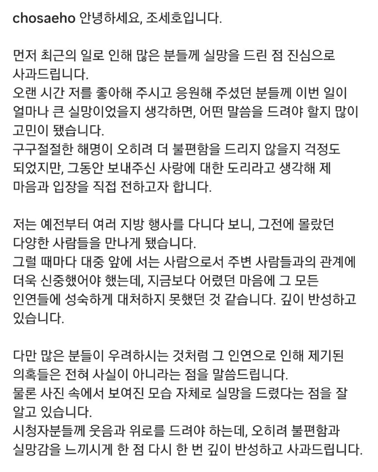 이준동 대표, 은퇴 조진웅 공개 옹호