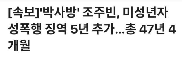 [속보]'박사방' 조주빈, 미성년자 성폭행 징역 5년 추가…총 47년 4개월