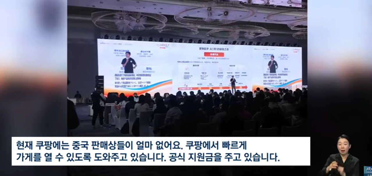 초유의 정보유출 사태로 탈퇴 움직임이 거세던 와중에 중국 현지 상인들에게 지원금까지 주겠다며 쿠팡 입점을 권유하는 설명회가 열렸습니다.