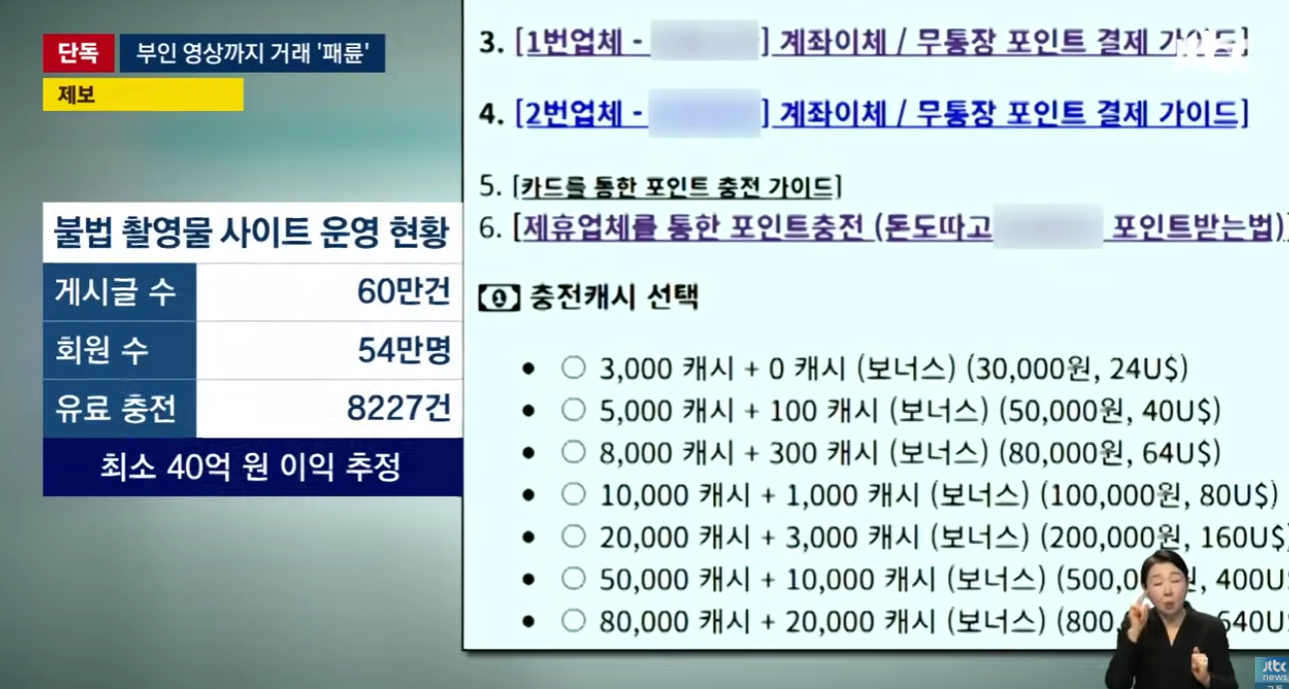 N번방과 소라넷. 대한민국을 뒤흔든 불법 사이트들입니다. JTBC가 이와 유사하면서도 더 악랄하게 변모한 불법 촬영물 사이트를 확인했습니다. 그곳에서는 가족과 여자친구를 찍은 영상들이 유포되고 있었습니다. 오늘 기준으로 회원 수가 54만 명이고, 게시물은 60만 건에 달합니다. 공급책은 '신작전문가'라는 이름으로 불리는데, 연간 수십억 원을 버는 수익 시스템까지 만들었습니다. 이 패륜 사이트의 회원들은 수사를 피할 방법을 공유하며, 공권력도 비웃었습니다