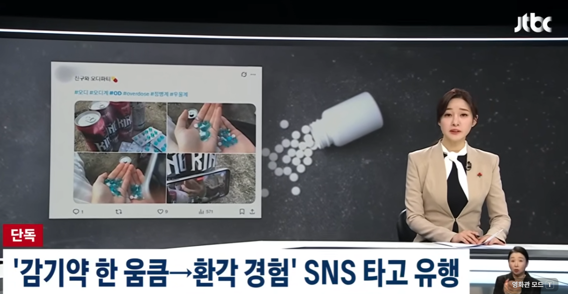 손바닥엔 알약이 가득하고 친구와 '오디 파티'를 열었다고 자랑합니다. 약물 과다 복용을 뜻하는 'OD'후기 글이 소셜미디어에 넘쳐나고 있습니다. 감기약 등을 의도적으로 과다 복용해 환각을 경험한 사례를 공유하는 게 유행처럼 번지고 있는 겁니다.
