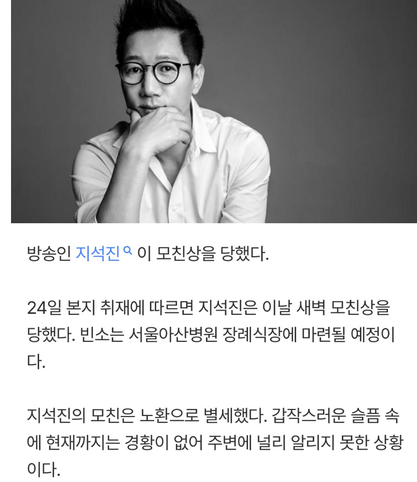 지석진, 24일 모친상