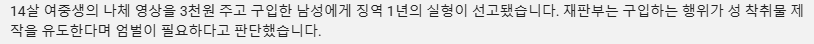 10대 성착취물 '3천원 구매' 남성에 '징역 1년'