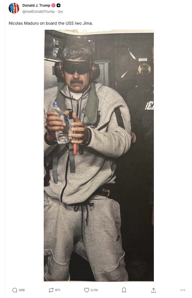 [속보] 트럼프, 마두로 압송 사진