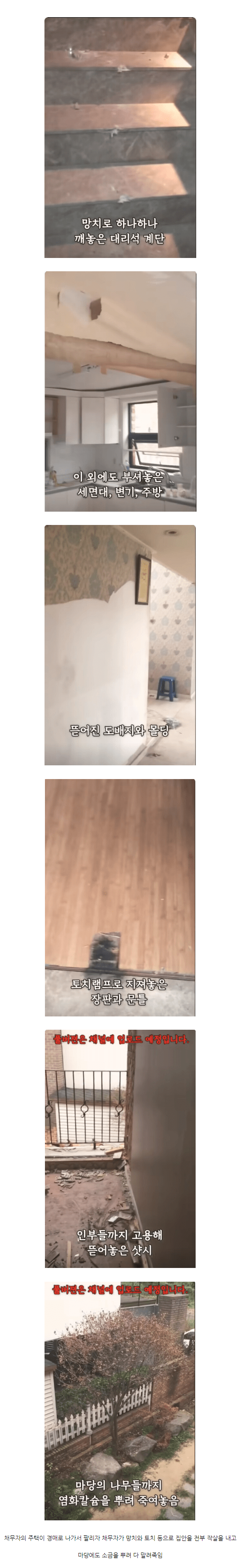 경매로 주택이 팔리자 다 박살낸 채무자