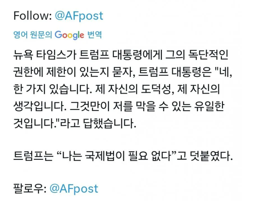 트럼프, "나는 국제법 필요 없다"짐이 곧 법이다 ㄷㄷㄷ