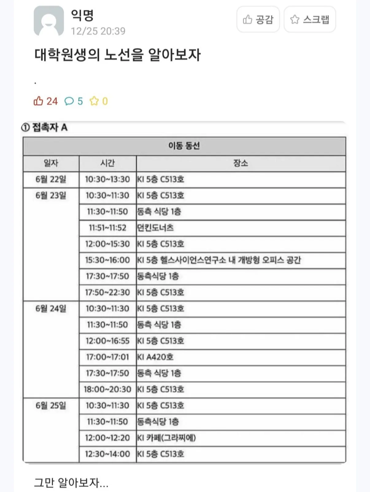 코로나때 레전드 동선