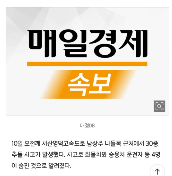 서산영덕고속도로 30중 추돌사고. 4명사망