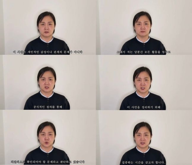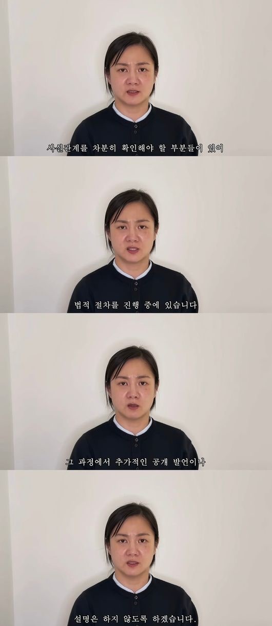 지난달 16일 공개된 박나래의 마지막 입장문 영상. 이 영상에서 박나래는 “현재 제기된 사안들에 대해서도 사실관계를 차분히 확인해야 할 부분들이 있어 법적 절차를 진행 중에 있다”, “저는 당분간 모든 활동을 멈추고 이 사안을 정리 하기 위해 집중하는 시간을 갖고자 한다. 제 자리에서 책임과 태도를 되돌아보겠다. 시간이 필요한 문제는 차분히 절차에 맡겨 진행하도록 하겠다” 등의 태도를 보였다.
