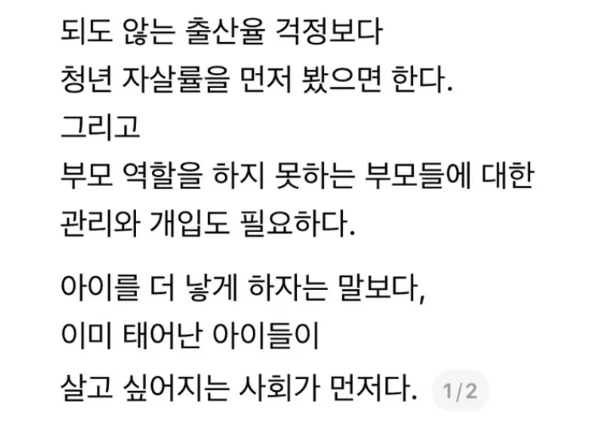 되도 않는 출산율 걱정보다 청년 자살률을 먼저...