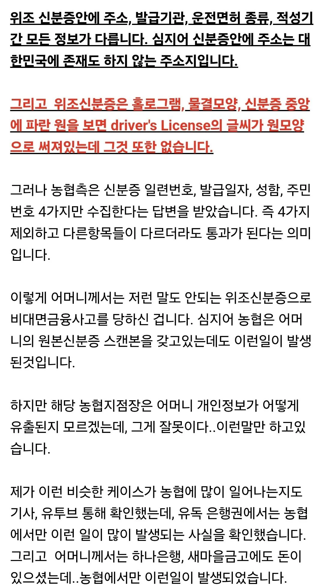 보배)위조신분증으로 전재산을 잃었습니다